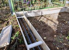 Далее мы выломали основание и спилили ограду, возведя по периметру участка надёжный металлический каркас для будущего бетонного цоколя.